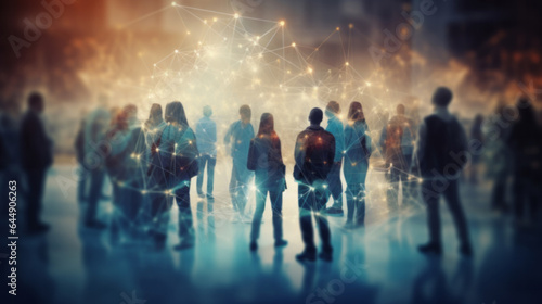 View of a crowd with a network of connections. Big data, smart city, wifi concept.