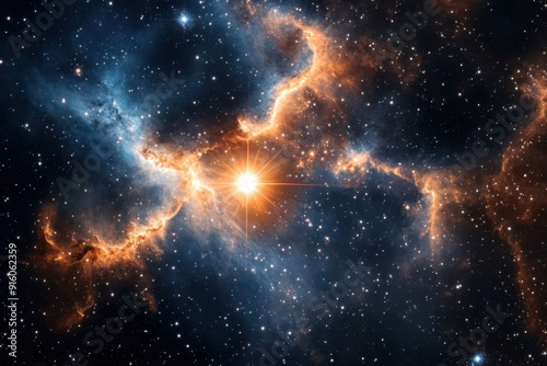 view of a stellar nursery with bright stars and nebulae forming