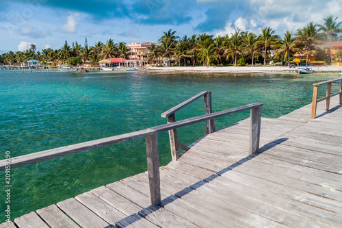 View of Caye Caulker village from a wooden pier, Belize