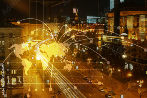 View of modern city with location pointers at night