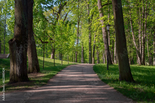 View of the alley in Gatchinsky Park on a sunny summer day, Gatchina, Leningrad region, Russia