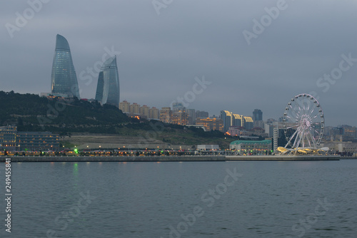 View of the city embankment in January twilight. Baku, Azerbaijan
