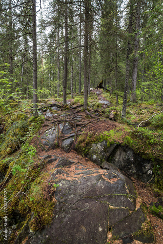View of the coniferous forest in Karelia