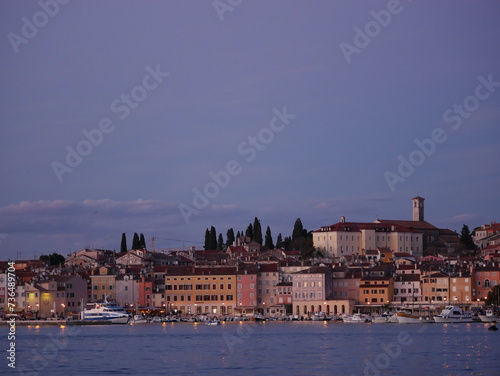 View of the embankment of Rovinj from the sea. The ships are in the harbor