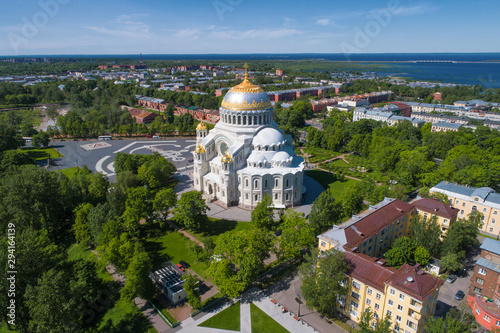 View of the old St. Nicholas Naval Cathedral on a June afternoon (aerial photography). Kronstadt, St. Petersburg