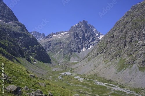 View of the source valley of the Romanche, Villar-d'Arêne, Département Hautes-Alpes, France