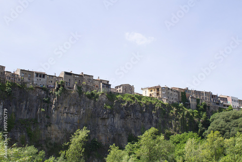 View of the street of old town a summer day. Castellfollit de la Roca. Spain.