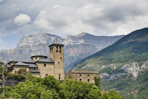 view of the village of torla-ordesa in the pyrenees, gateway to ordesa and monte perdido national park