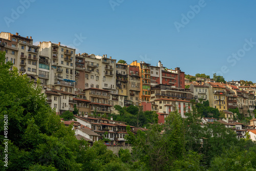 View of Veliko Tarnovo, a city in north central Bulgaria. Houses built on a steep mountain.