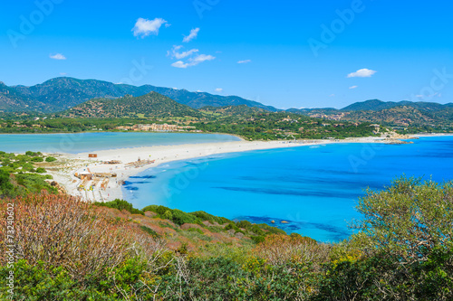 View of Villasimius lagoon beach and blue sea, Sardinia island