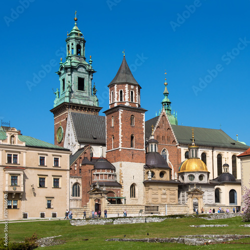 View on the cathedral on Wawel Hill in Krakow in Poland