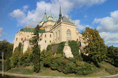 View to romantic Bojnice castle with garden in Bojnice, Slovakia