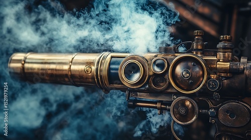 Viewing Brass Apparatus with Smoke in Steampunk Style