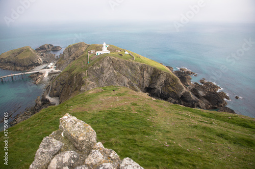 Views of the southern end of Lundy Island with a misty sky, The Bristol Channel, Devon, UK