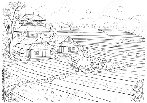 Village Scenery – A Serene Rural Landscape Sketch