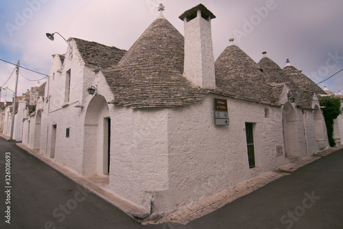villaggio con tetto a forma di cono case Alberobello Puglia Italia