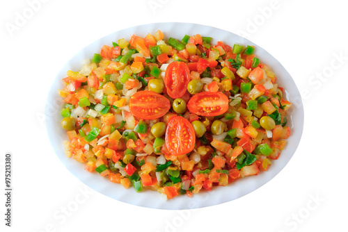 Vinagrete or Vinaigrette is a traditional Brazilian cuisine salad isolated on white background