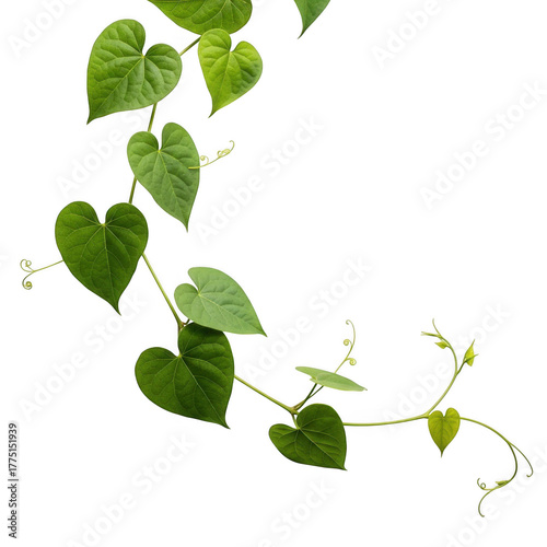 Vine with green heart-shaped leaves trailing in a curve isolated on transparent background
