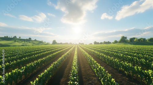Vineyard sunrise, rolling hills, agriculture, sunny day, nature, farming