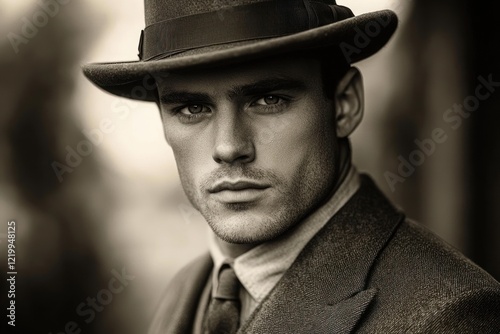 Vintage 1920s Portrait of a Caucasian Man in Bowler Hat and Suit