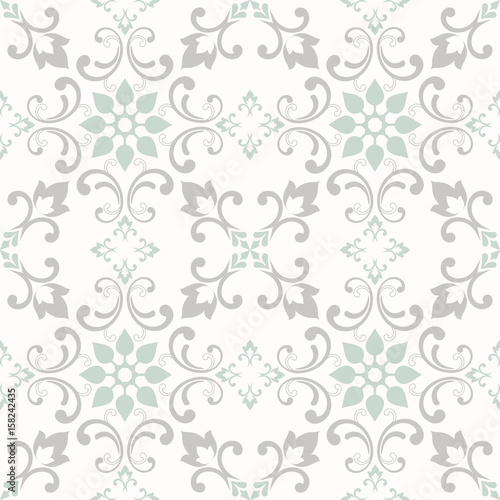 Vintage abstract floral seamless pattern. Intersecting curved elegant stylized leaves and scrolls forming fine ornament in Arabian style. Arabesque. Decorative lattice.