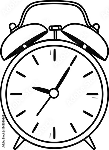 Vintage Alarm Clock Clipart, Retro Bell Timepiece Outline Drawing.