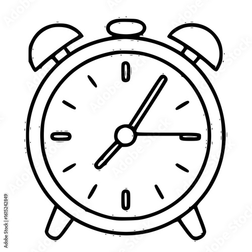 Vintage alarm clock in handdrawn black and white doodle vector illustration