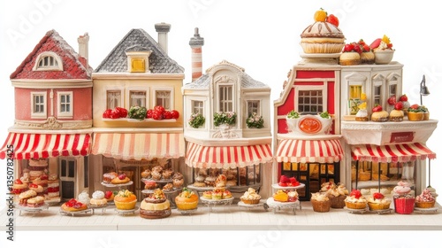 Vintage Bakery Scene with Colorful Pastries on White Background