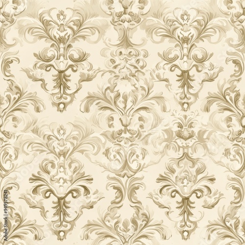 Vintage Baroque filigree pattern on vintage beige fabric background, seamless repeating pattern, textile print style, minimal, Baroque design, seamless filigree pattern, home decor