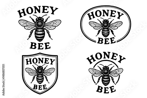 Vintage bee logo collection featuring engraved illustrations, perfect for unique product designs and artistic applications