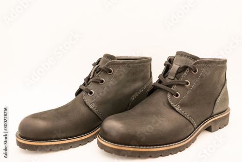 vintage black boots on white background, retro shoes