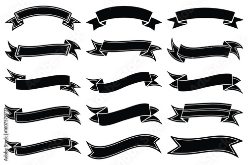 Vintage Black Ribbon Banner Clipart Set | Hand-Drawn Retro Label Vector Collection