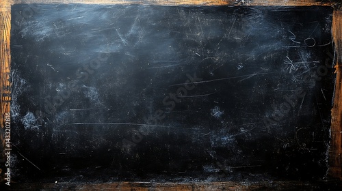 Vintage Blackboard with Wooden Frame, A vintage blackboard with a wooden frame, showing chalk marks and scratches