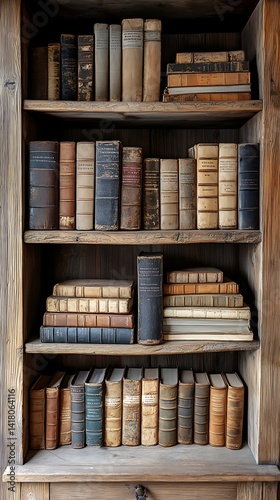 Vintage Books On Rustic Wooden Shelves High Resolution Image