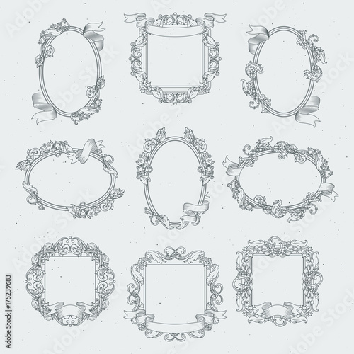 Vintage borders and victorian ribbons. Vector set in retro style