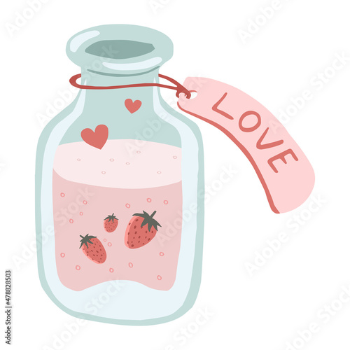 Vintage bottle of love potion drink with label tag