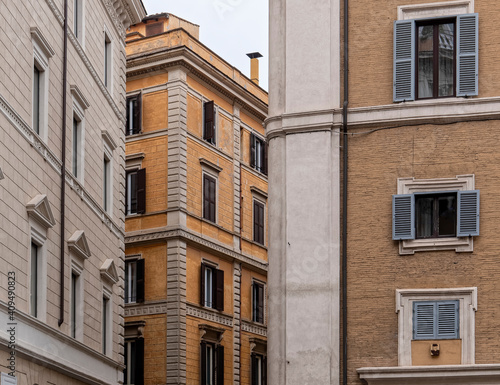 vintage buildings' colorful facades, Rome Italy