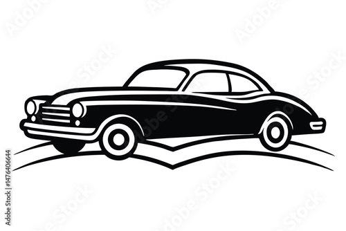 Vintage Car Logo in Retro Classic Monoline Illustration Style