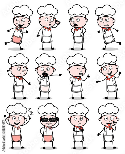 Vintage Cartoon Chef - Set of Concepts Vector illustrations