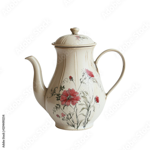 vintage ceramic teapot with floral design, featuring red flowers and green leaves, perfect for tea lovers and collectors