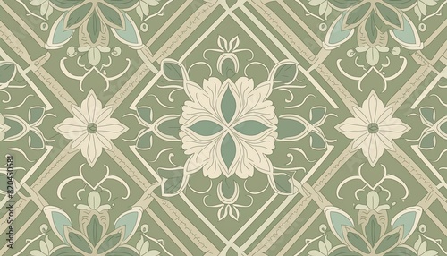 Vintage Charm: Geometric Floral Pattern with Retro Colors