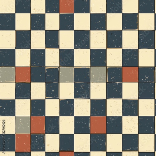 Vintage Chessboard Pattern: Seamless Tile Background with Distressed Texture for Retro and Decorative Designs