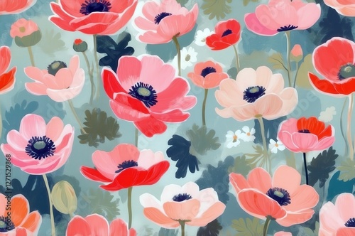 Vintage colorful fantasy dreamy abstract blooming botanical flowers seamless patterns illustration, nature theme concept texture design.