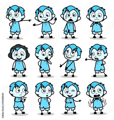 Vintage Comic Office Guy Poses - Set of Concepts Vector illustrations