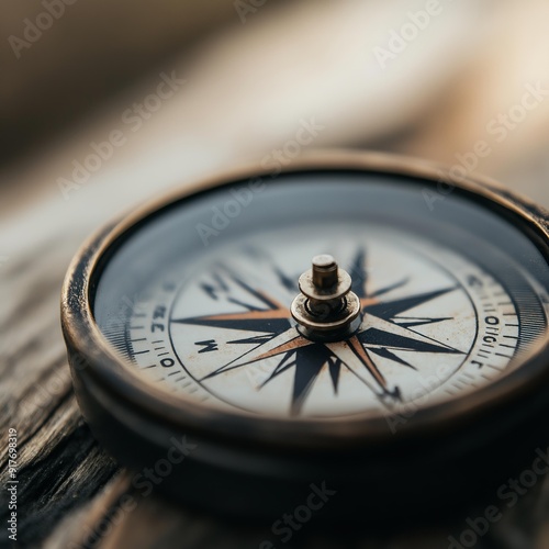 Vintage Compass on Rustic Wooden Surface