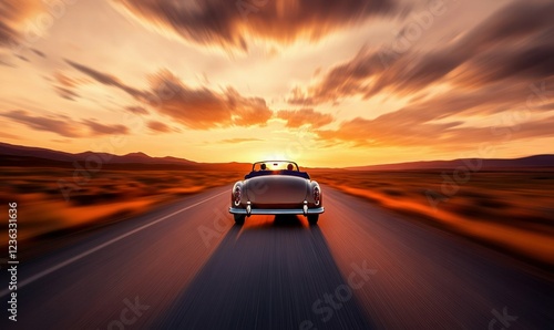 Vintage Convertible on Desert Highway at Sunset