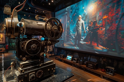 Vintage Film Projector Showing Scene From Movie in Modern Theater