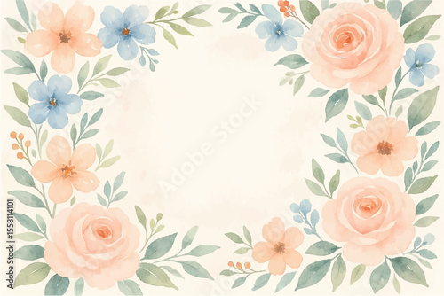 Vintage floral background with romantic pink roses, elegant frame, and decorative hearts for a wedding or Valentine's Day card design