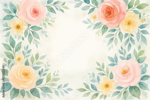 Vintage floral background with romantic pink roses, elegant frame, and decorative hearts for a wedding or Valentine's Day card design