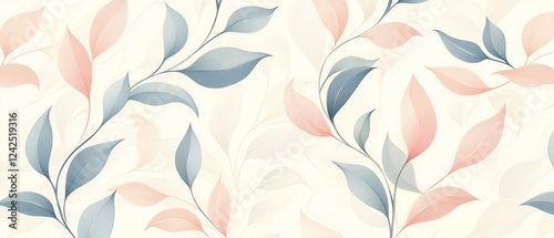 Vintage floral pattern with curved leaves elegant pastel-hued background in minimalistic linear design